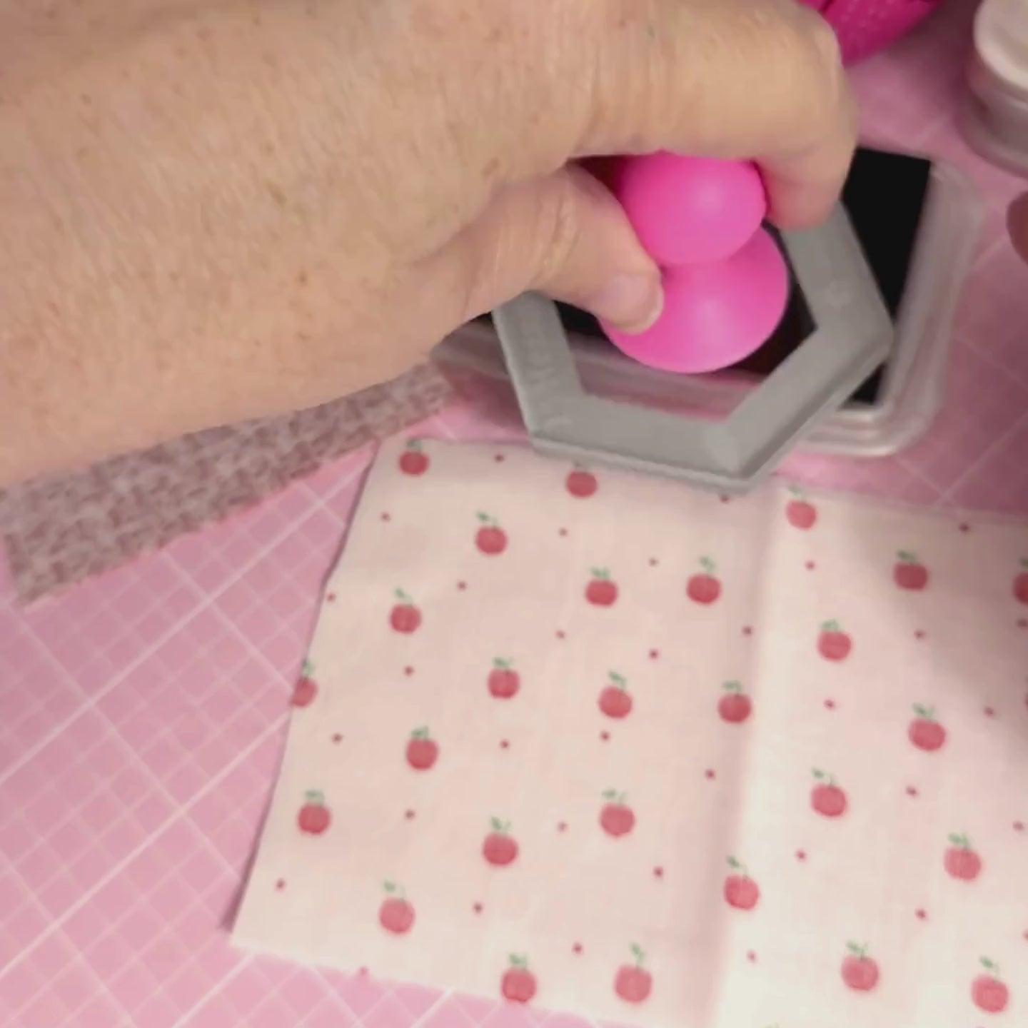 - A mix of pink and orange fabrics for surrounding hexagons